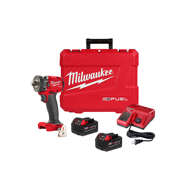 M18 FUEL 1/2" Compact Impact Wrench w/ Pin Detent Kit is the most compact in its class, delivering users more power, the most access in tight spaces at only 4.9" in length, and maximum workspace visibility. The cordless impact wrench features a POWERSTATE Brushless motor that generates up to 250 ft-lbs of fastening and nut-busting torque, providing users with the power required for installation and removal, even in confined spaces. The 1/2" impact wrench has tri-LEDs that surround the anvil to deliver brighter light with fewer shadows. 4-Mode DRIVE CONTROL offers greater precision with a range of pre-set RPM and IPM levels, selectable from a single button on the tool. By selecting Mode 4, AUTO SHUT-OFF control applies no more than 20 ft-lbs of torque for hand-tight fastening applications to prevent overtightening. Mode 4 also features Bolt Removal Control delivers full torque output, then decreases RPMs once the bolt is loosened to prevent fastener drops. REDLINK PLUS Intelligence electronics make these controls possible while ensuring maximum performance, protecting the tool against overloads, over-heating, and over-discharge. M18 REDLITHIUM XC5.0 Extended Capacity Resistant Battery Packs included provide increased protection against oils, greases, and solvents.